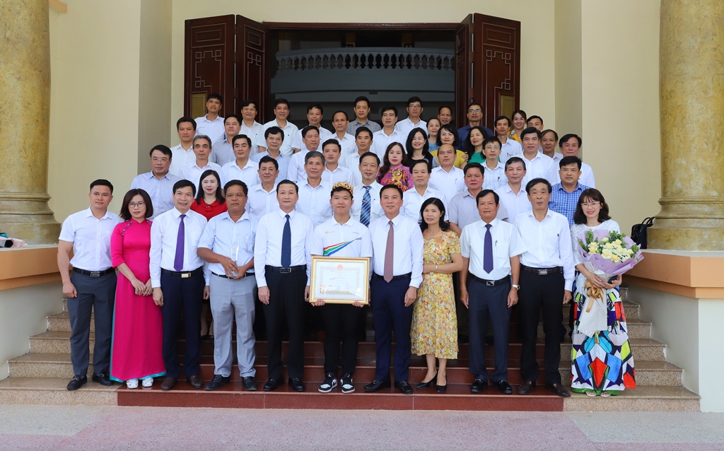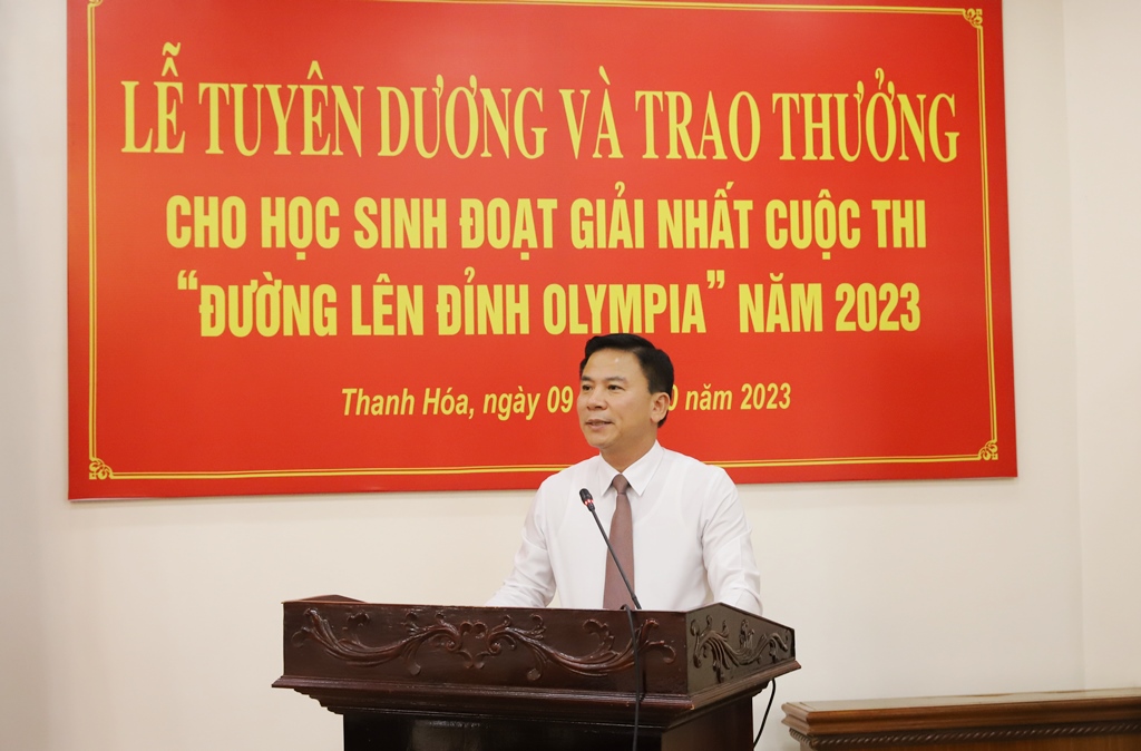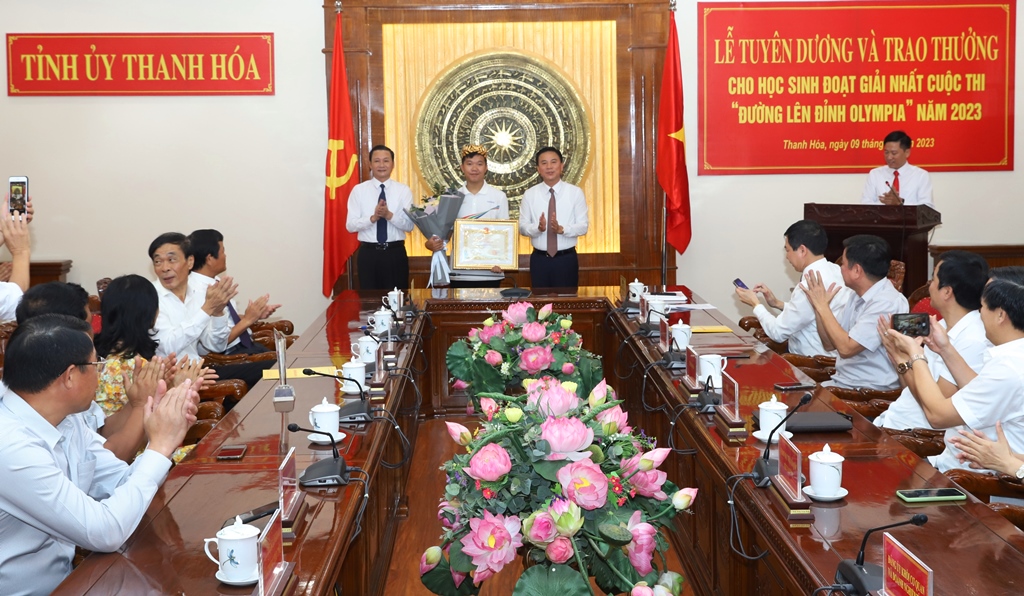 Chiều ngày 9/10/2023, Tỉnh ủy Thanh Hóa đã tổ chức Lễ tuyên dương và trao thưởng cho học sinh Lê Xuân Mạnh, học sinh lớp 12A1 Trường THPT Hàm Rồng - Đoạt giải Nhất cuộc thi Đường lên đỉnh Olympia 2023.