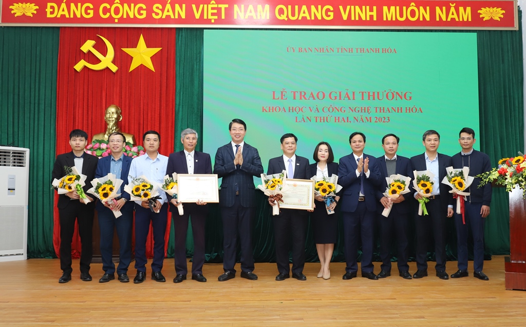 Cũng tại hội nghị, Phó Chủ tịch UBND tỉnh, Chủ tịch Hội đồng KH&CN tỉnh Lê Đức Giang đã trao 6 Giải thưởng KH&CN tỉnh Thanh Hóa năm 2023 cho 6 công trình và cụm công trình của các tác giả và nhóm tác giả. Phó Chủ tịch UBND tỉnh Lê Đức Giang đề nghị các tác giả đạt giải thưởng KH&CN tiếp tục sáng tạo, cải tiến, hoàn thiện sản phẩm, mở rộng mô hình, ứng dụng vào sản xuất, tạo ra sự lan tỏa rộng rãi trong cộng đồng, phục vụ thiết thực sản xuất, đời sống đạt hiệu quả cao hơn nữa.
