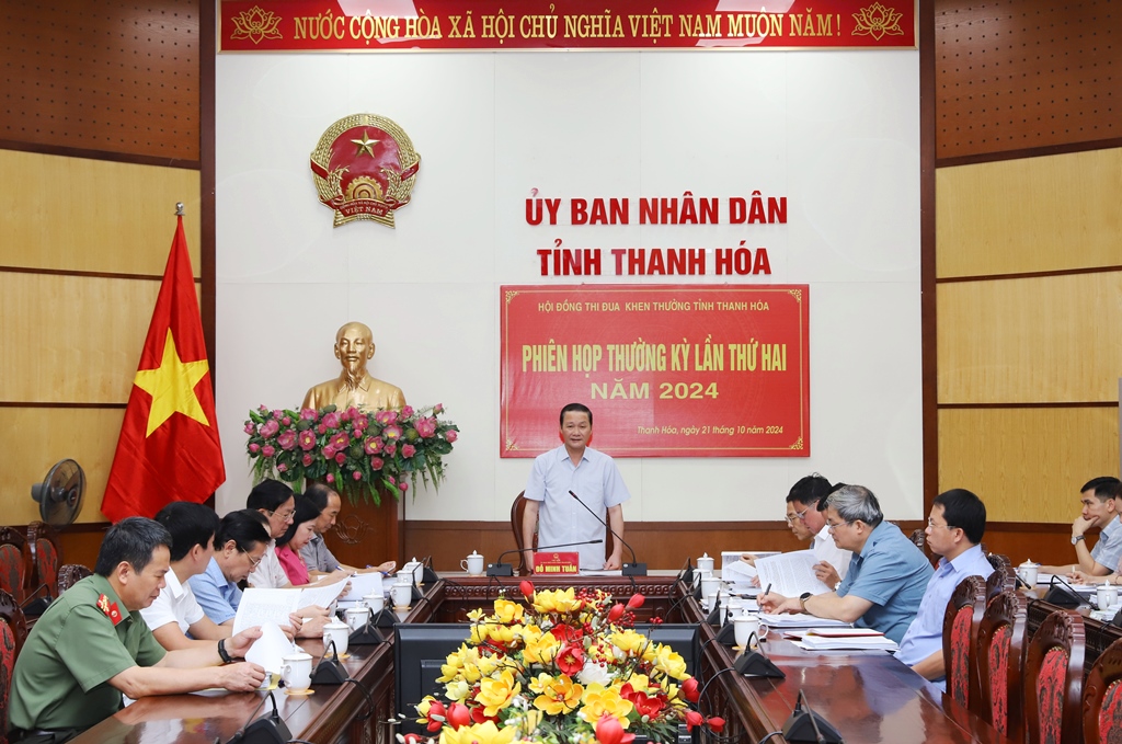 Sáng 21/10/2024, Hội đồng Thi đua - Khen thưởng (TĐ-KT) tỉnh tổ chức phiên họp thường kỳ lần hai, năm 2024 để xét chọn các tập thể, cá nhân có thành tích xuất sắc đề nghị tặng danh hiệu: Anh hùng lao động; Huân chương Lao động; Bằng khen của Thủ tướng Chính phủ; Cờ thi đua của Chính phủ và UBND tỉnh; Công nhận cơ quan, đơn vị, xã, phường, doanh nghiệp kiểu mẫu. Đồng chí Đỗ Minh Tuấn, Phó Bí thư Tỉnh ủy, Chủ tịch UBND tỉnh, Chủ tịch Hội đồng TĐ-KT tỉnh chủ trì phiên họp.