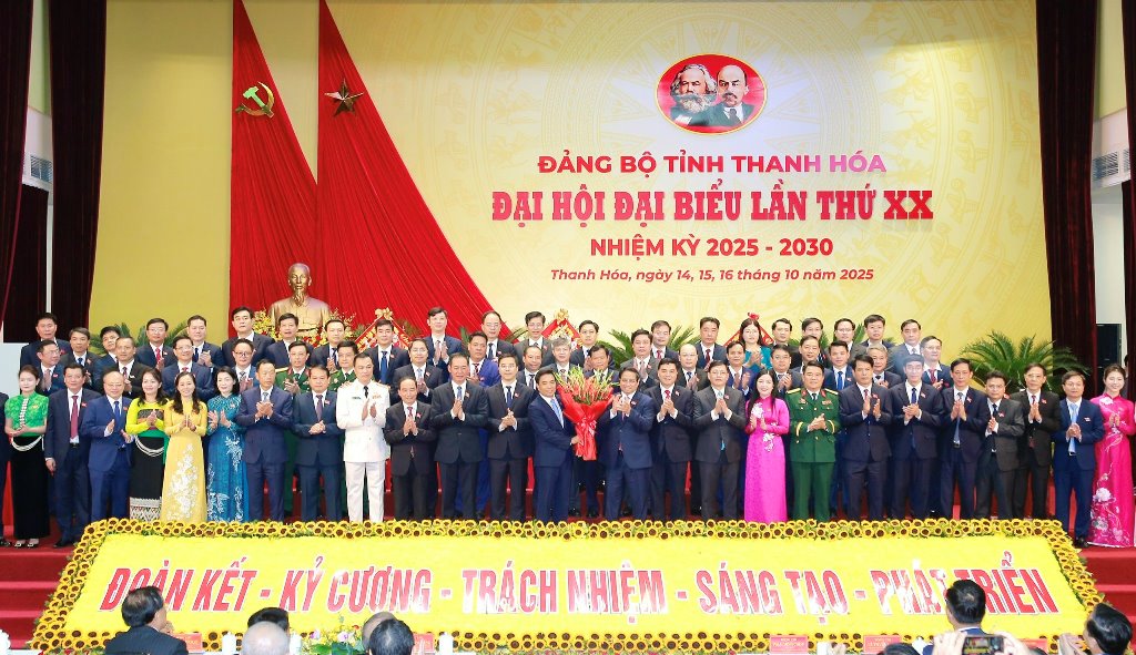 Sáng 15/10/2025, tại Trung tâm Hội nghị 25B (phường Hạc Thành), Đảng bộ tỉnh Thanh Hóa khai mạc trọng thể Đại hội đại biểu Đảng bộ tỉnh lần thứ XX, nhiệm kỳ 2025-2030. Đại hội vinh dự được Ban Chấp hành Trung ương Đảng, đồng chí Tổng Bí thư Tô Lâm, Ban Chấp hành Đảng bộ Chính phủ tặng lẵng hoa chúc mừng. Đồng chí Phạm Minh Chính, Ủy viên Bộ Chính trị, Thủ tướng Chính phủ dự và trực tiếp chỉ đạo Đại hội.