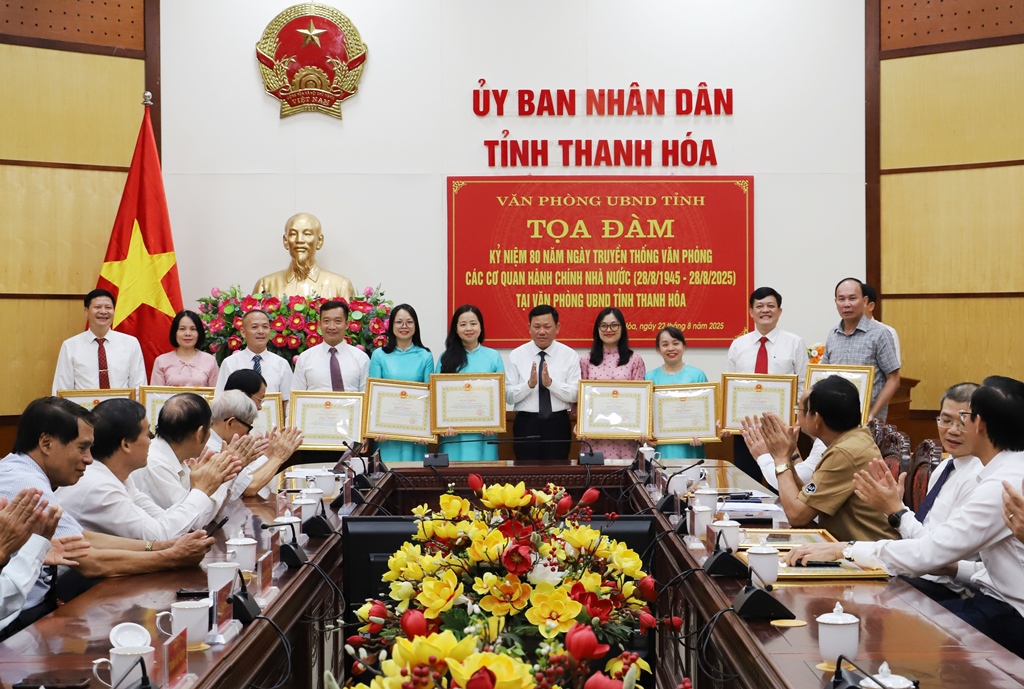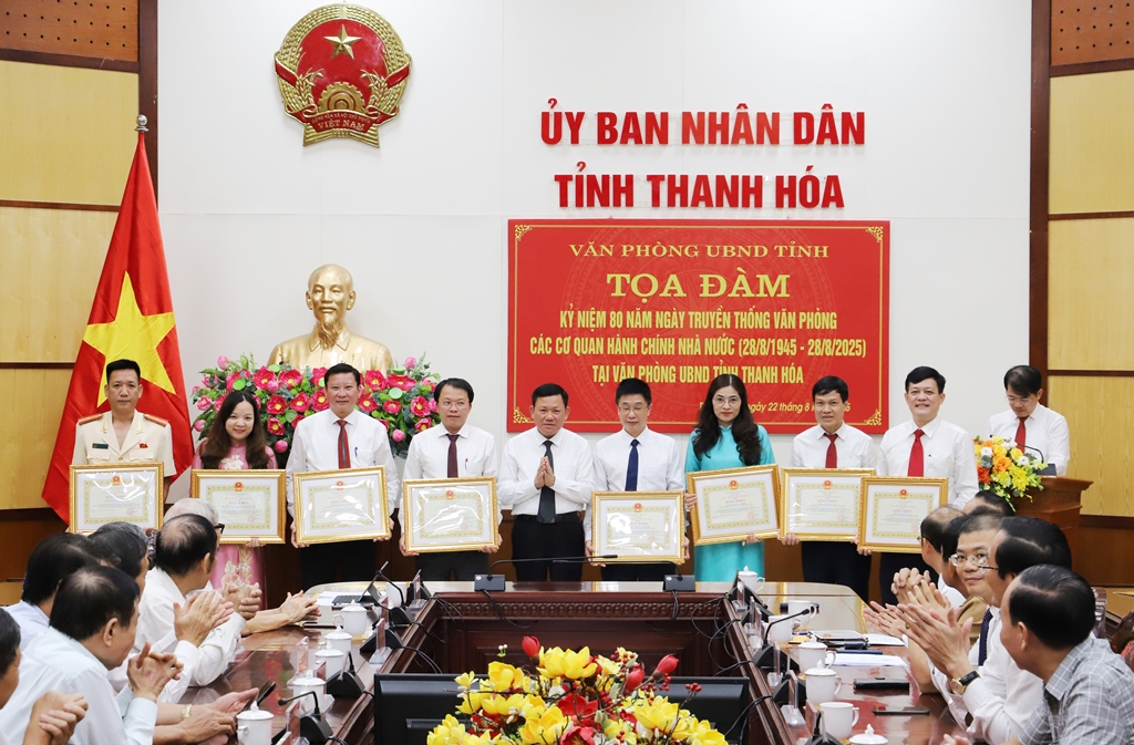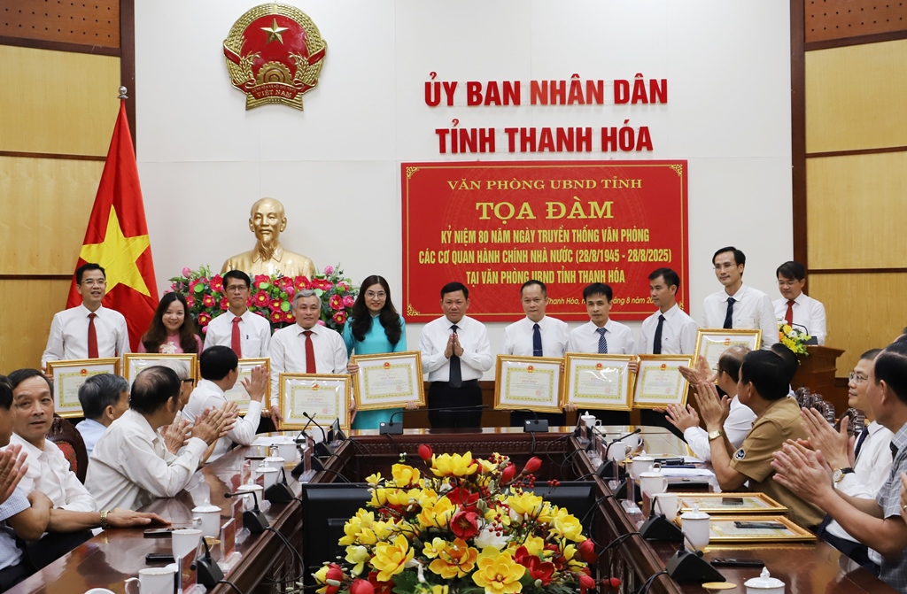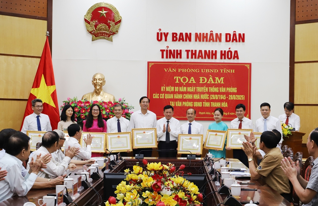 Tại buổi tọa đàm, Phó Chủ tịch Thường trực UBND tỉnh Nguyễn Văn Thi đã trao Bằng khen của Chủ tịch UBND tỉnh cho 8 tập thể và 28 cá nhân đã có nhiều thành tích đóng góp trong quá trình xây dựng và phát triển cơ quan Văn phòng UBND tỉnh, nhân dịp kỷ niệm 80 năm Ngày truyền thống Văn phòng cơ quan hành chính nhà nước (28/8/1945 - 28/8/2025).
