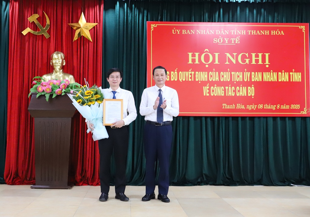 Chiều ngày 8/8/2025, tại Sở Y tế; UBND tỉnh Thanh Hóa đã tổ chức hội nghị công bố và trao Quyết định bổ nhiệm Giám đốc Sở Y tế.