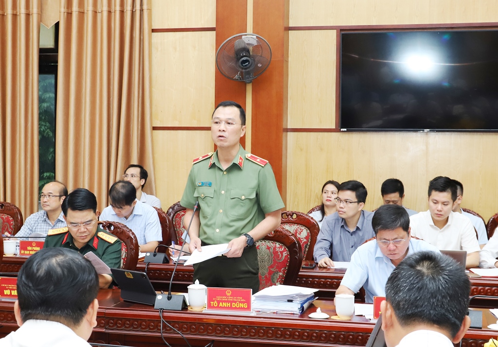 Giám đốc Công an tỉnh Tô Anh Dũng phát biểu tại phiên họp.