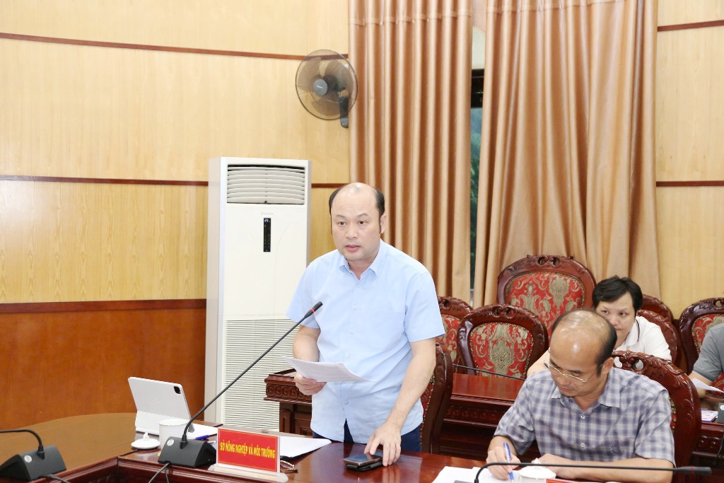 Giám đốc Sở Nông nghiệp và Môi trường báo cáo tại hội nghị.