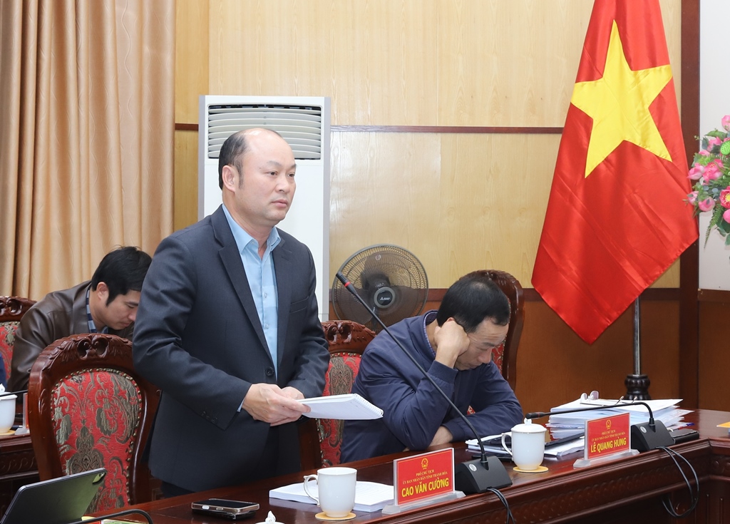 | Phó Chủ tịch UBND tỉnh Cao Văn Cường phát biểu tại phiên họp. |