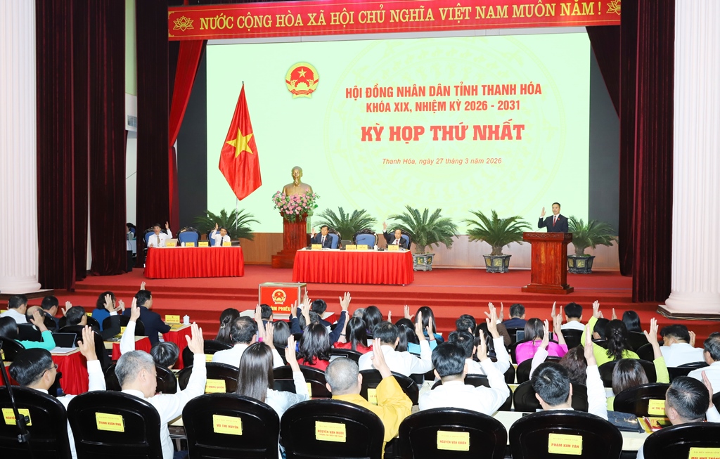 Sáng ngày 27/3/2026, HĐND tỉnh Thanh Hóa khóa XIX, nhiệm kỳ 2026 - 2031 đã tổ chức kỳ họp thứ nhất để kiện toàn các chức danh của HĐND tỉnh, UBND tỉnh và xem xét, quyết định một số nghị quyết về phát triển kinh tế - xã hội. Đây là kỳ họp có vai trò then chốt, quyết định chất lượng, hiệu quả hoạt động của bộ máy lãnh đạo chủ chốt của HĐND và UBND tỉnh Thanh Hóa trong nhiệm kỳ mới.